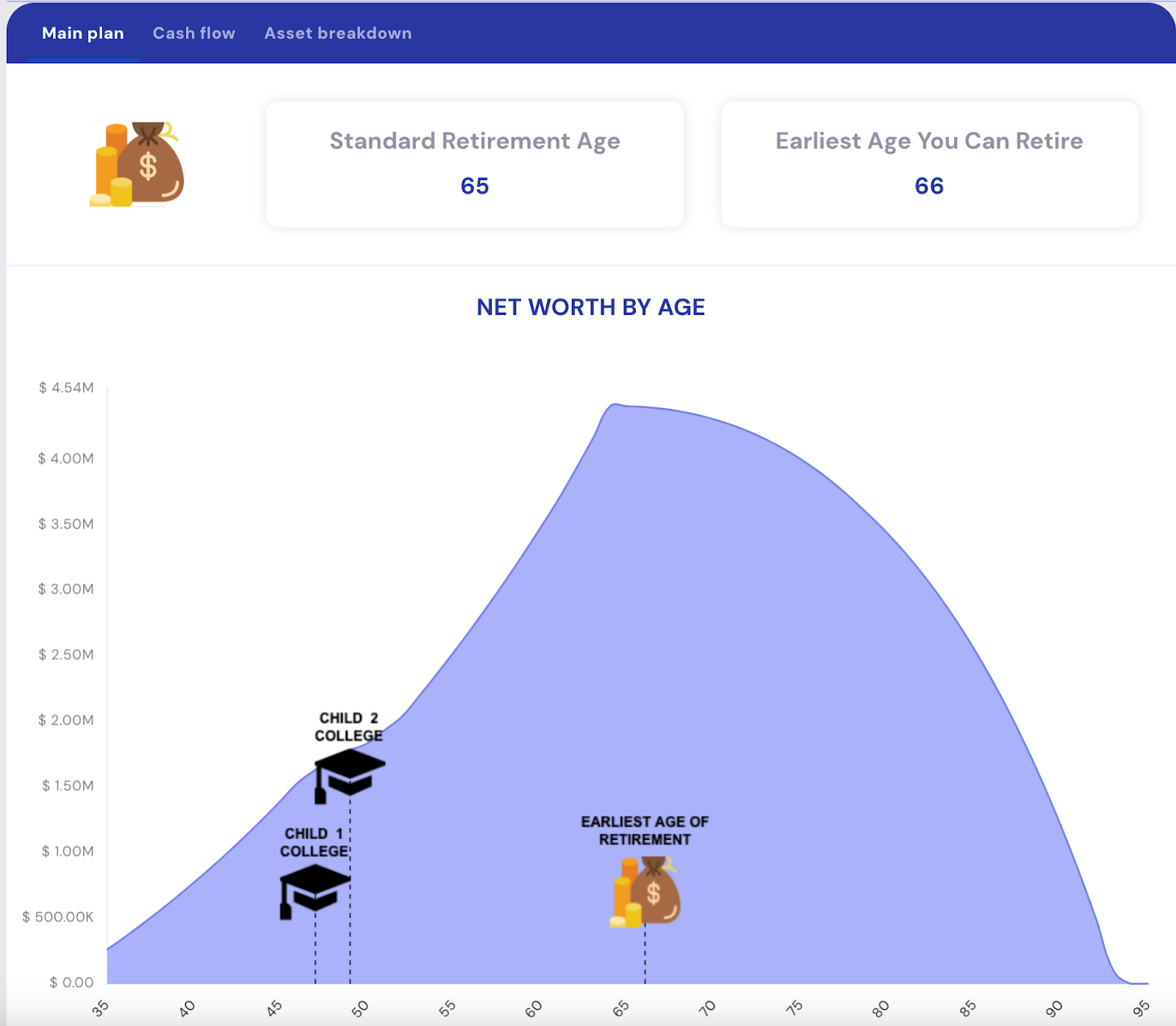This reduces the college expenses by about half, and allows this person to retire at age 66.